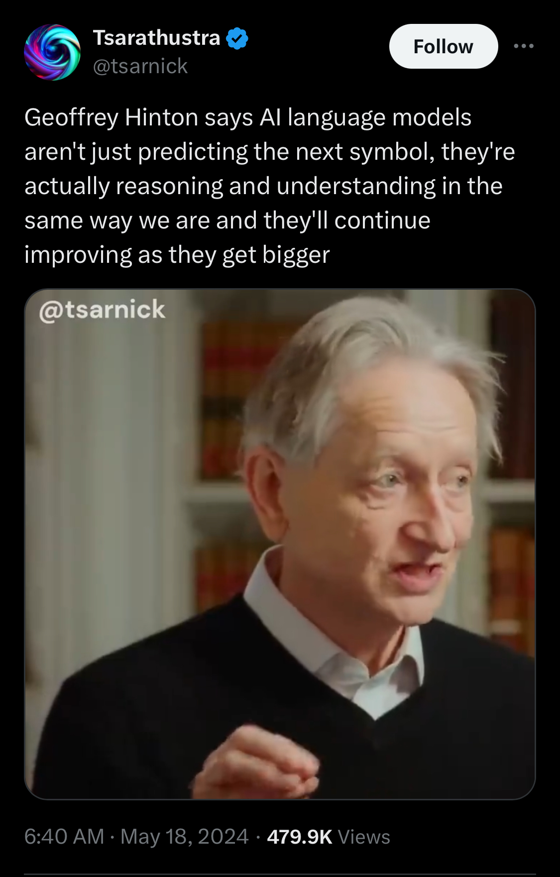 Language Models are actually reasoning and understanding? https://x.com/tsarnick/status/1791584514806071611